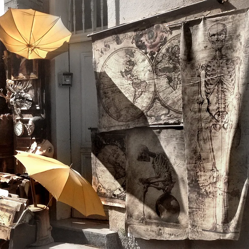 Toiles coton brut, style ancien , patinées, donnant l’air de vieux parchemins, chinés dans une brocante de quartier