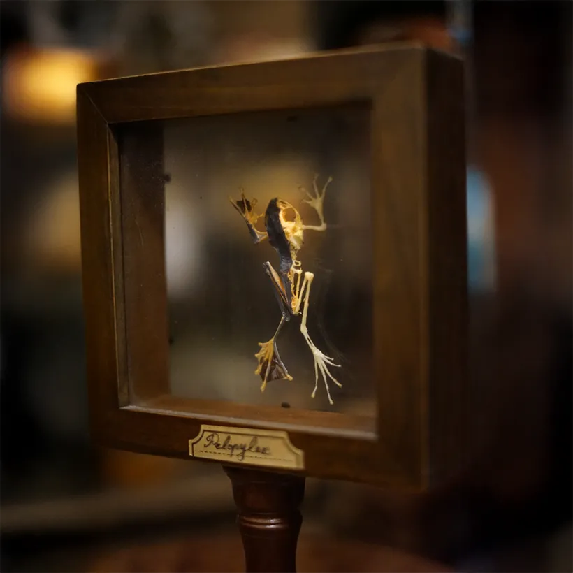 Véritable Grenouille en taxidermie dans cadre en bois. La plupart des objets de cette rubrique vont être sur commande avec un délai supérieur : entre 3 et 4 semaines environ. merci de votre patience…Toutes nos espèces respectent la liste des animaux qui ne sont pas en danger d’extinction.
