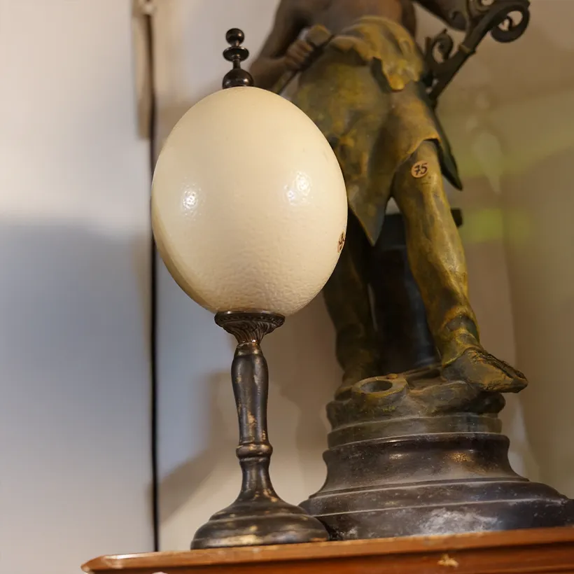 Véritable œuf d’autruche monté sur pied en bois. La plupart des objets de cette rubrique vont être sur commande avec un délai supérieur : entre 3 et 4 semaines environ. merci de votre patience…Toutes nos espèces respectent la liste des animaux qui ne sont pas en danger d’extinction.