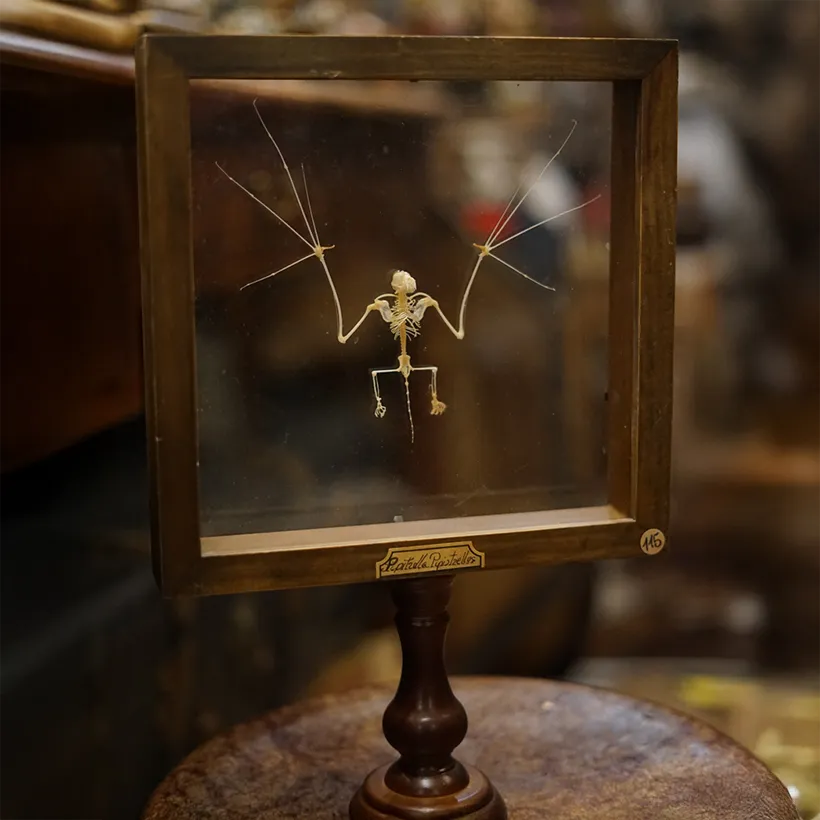 Authentique squelette chauve souris dans cadre en bois. La plupart des objets de cette rubrique vont être sur commande avec un délai supérieur : entre 3 et 4 semaines environ. merci de votre patience…